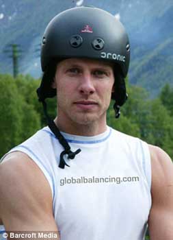 中新網(wǎng)4月17日電 據(jù)英國媒體報(bào)道,29歲的挪威男子Eskil Ronningsbakke熱衷于一切考驗(yàn)平衡能力的極限表演,他最近的一次表演是在挪威海峽一處1000米高的懸崖間拉上鋼絲,在鋼絲上赤身裸體的倒立騎自行車。