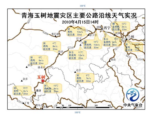 據(jù)悉此次專報(bào)重點(diǎn)針對(duì)青海玉樹(shù)地震災(zāi)區(qū)天氣情況和氣候背景進(jìn)行預(yù)報(bào)和分析,主要包括震區(qū)最新天氣實(shí)況、玉樹(shù)地震災(zāi)區(qū)未來(lái)5天天氣預(yù)報(bào)、道路交通氣象預(yù)報(bào)、決策建議以及玉樹(shù)地震災(zāi)區(qū)氣候背景分析和氣候趨勢(shì)預(yù)測(cè)等內(nèi)容。