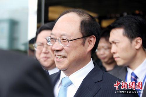 鄭立中向在場(chǎng)守候的兩岸媒體記者微笑招手致意,不過未發(fā)表談話。海協(xié)會(huì)其他成員李亞飛、徐莽、馬曉光、張勝林等也同機(jī)抵達(dá)。