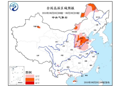中新網(wǎng)6月28日電 中央氣象臺28日06時繼續(xù)發(fā)布高溫藍(lán)色預(yù)警:預(yù)計(jì),今天白天,內(nèi)蒙古東北部和中部的部分地區(qū)、黑龍江西北部、山西、河北大部、天津、河南中北部、山東中西部、安徽北部、江蘇西北部、廣東雷州半島、海南北部等地有35~37℃、局地38℃的高溫天氣,其中,河北南部的局部地區(qū)最高氣溫可達(dá)40℃。