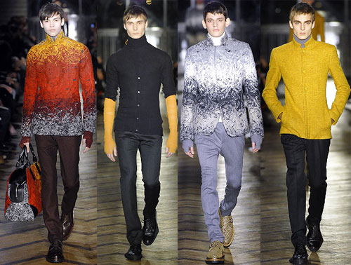 在男裝界,從80年代開始,每隔10年就是一次新舊世界的大更替,原來的明星失去了創(chuàng)新的能力,轉(zhuǎn)而鞏固技藝;新的明星脫了邊緣色彩,成為新一輪標(biāo)準(zhǔn)的制定者。在2008秋冬季的男裝舞臺(tái)上,沒有以往Dior Homme似的“逐鹿中原”的兇猛勢(shì)力,來自新舊兩個(gè)世界的設(shè)計(jì)師各自照亮頭頂?shù)囊黄炜。雖然看不到刺激的新銳力量很遺憾,卻應(yīng)了一句老話:“百花齊放,百家爭(zhēng)鳴!