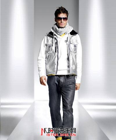 特殊的材質,如碳纖維、PU膠、光蠟、軋光印花布、PVC、漆光及金屬質感,彷彿幫服裝上了一層亮光膜,賦予了外太外空般的未來科技感;而不規(guī)則收邊、洗舊質感與粗獷的印染效果,更展現了十足經典復古風尚。由于“太空人”及“搖滾風”是兩大主題圖像,再搭配童趣的電玩“小蜜蜂”的畫面,讓Strellson男裝精采地展現了大男孩風尚。色調上本季選用獨特的“巖石灰”為本季重點,黑、白、沙色和咖啡色是基調,綠、銀、鮮黃、正紅、土耳其藍則穿插點綴,讓人眼睛為之一亮呢!