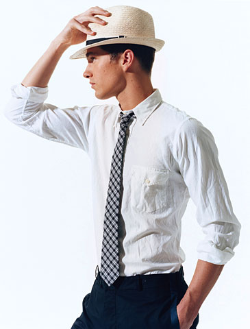 一、襯衫領(lǐng)帶黑白配?否定!除非今天是你最好朋友的婚禮大喜日子,否則穿著白色襯衫黑領(lǐng)帶就太過(guò)于僵硬了。相反的,選擇一件方格印花的襯衫或者領(lǐng)帶,會(huì)有更好的效果。如果將袖子高高的挽起來(lái),則更有種玩世不恭的瀟灑和自然。當(dāng)然,如果你足夠自信,那么黑色的褲子搭配一頂小禮帽,將會(huì)讓你完全的精彩出眾。
