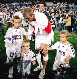 爸爸小貝在皇馬的最后一站,三個兒子都來捧場