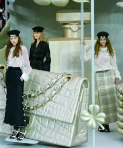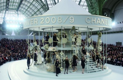 近日,Chanel在北京四季酒店舉辦了08秋冬時裝新品發(fā)布,一場華麗的“旋轉木馬”秀成為北京時尚圈一大亮點。在“旋轉木馬”設計里,其實并沒有木馬的影子,菱格紋包、珍珠項鏈、雙C標志、鑲著滾邊的Chanel外套與浪漫蝴蝶結等經(jīng)典圖騰俏皮地迎接著人們的目光。