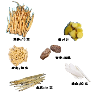 黨參是常用的補(bǔ)氣中藥,具補(bǔ)中益氣、和胃養(yǎng)血等功效,最宜用于平素倦怠乏力,精神不振,自覺氣短,稍一活動(dòng)就喘促的氣虛患者,由于補(bǔ)氣也有助于生血,所以黨參也適用于氣血兩虛面色蒼白,頭昏眼花,胃口不好,大便稀軟,容易感冒的病人。黨參含有多糖、葡萄糖、果糖、菊糖、蔗糖、磷酸鹽和17種氨基酸,其中包括賴氨酸等7種人體不能合成的必需氨基酸,此外還含皂甙、揮發(fā)油、脂肪和鉀、鈉、鎂、鋅、銅、鐵等14種元素,這些都是黨參作為補(bǔ)益藥的物質(zhì)基礎(chǔ)。