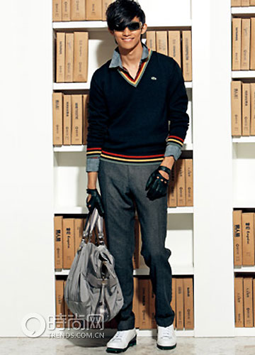 這個款式是最具有紳士魅力的線衫,在大多數(shù)場合都能讓你顯得低調(diào)卻又精致。但它適合肩膀?qū)掗熞稽c的男士,能給人高大的依靠感。肩膀太窄小的身材穿著它會把身材變成一個梨形,不利于男性形象的發(fā)揮。搭配時,為了避免領(lǐng)間的單調(diào),可以用細(xì)長條的絲巾悄悄地露出一點邊。