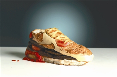 近日,運動品牌玩出新花樣,他們委托8位設(shè)計師,通過用漢堡包的形式表現(xiàn)他們的產(chǎn)品。瑞典的設(shè)計師M.F Husain使用漢堡制作了一款A(yù)ir Max 90球鞋,惟妙惟肖。讓人們見了真不知道是該穿它,還是該吃它。(舒志娟)