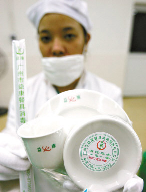 發(fā)表評論  當(dāng)你去餐館用餐時,是否被加收過1元的“放心碗”餐具費?對于這套被塑料膠膜包裹的消毒餐具,你是否能夠不用茶水清洗而放心使用呢?由于目前缺少對餐具集中消毒企業(yè)的進行監(jiān)管的法律法規(guī),消費者對集中消毒碗筷缺乏信心,因此,廣州市人大代表建議暫不推行集中消毒碗筷。