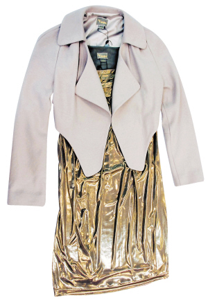 2 LOVE.WIN:灰閃外套3460元,淺灰高領(lǐng)衫1180元,黑短裙1780元