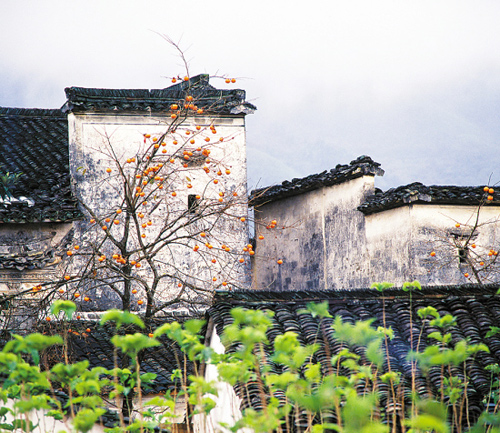 徽居是徽州最重要的符號,是整個徽州田園精神的具象和詮釋,如今在深山坳里一個個聚族而居的龐大古村落就是當年徽商艱辛打拼的歷史遺跡,簡練的門庭和極盡奢華的內飾是徽商這一特殊商幫的精神氣質———遵循傳統(tǒng),不鋪張,不張揚,內斂而儒雅,他們是曾經富可敵國的財富英雄。鱗次櫛比的馬頭墻代表著一種秩序和傳承,耕讀文化和亦儒亦商的傳統(tǒng)至今根深蒂固,徽州人家的老窗戶雕刻的亦是簡潔而文氣的冰裂紋,光線漏了進來,在屋子里投影下的是抽象的裝飾。黑、白、灰的色調是永不過時的經典。最愛屋后幾株自生自長的野柿,秋風吹得葉兒盡落,它們就這么無遮無攔,熱熱鬧鬧地掛著一樹的小紅燈籠,映襯在斑駁的馬頭墻里,煞是喜人,主人家靦腆而好客,悶聲不響地拎個竹竿兒,敲幾個下來,落在圍兜里,讓我們自己拿,咬在嘴里,絲絲甜糯就慢慢潤開了去……(許志偉)