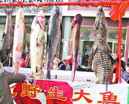 他是東北人,宣傳車上吊的都是從東北烏蘇里江捕來(lái)的野生大黃鱷、鱘鰉魚(yú)、大青魚(yú)等,每條都在30公斤以上,其中的那條鱘鰉魚(yú)有100多公斤。記者問(wèn)趙某是否知道這些動(dòng)物都是保護(hù)動(dòng)物時(shí),趙某搖搖頭不語(yǔ)。據(jù)趙某說(shuō),他在駐馬店開(kāi)店還沒(méi)辦理相關(guān)證件。該市農(nóng)業(yè)局漁政科董科長(zhǎng)告訴記者,這些動(dòng)物屬國(guó)家保護(hù)動(dòng)物,他們將依法對(duì)這家酒店進(jìn)行查處。