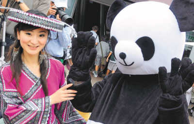 由中國國家旅游局和中國旅行社主辦的中國旅游文化節(jié), 12月8日在新西蘭最大城市奧克蘭舉行。圖為身著中國少數(shù)民族服飾的姑娘與大熊貓吉祥物合影。