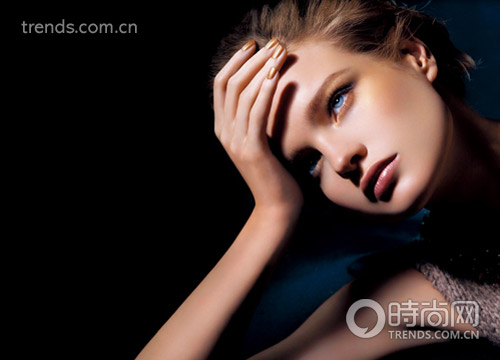 本季絕對(duì)要擁有類(lèi)似甜杏色系的散發(fā)著金色光芒的蜜粉或粉餅,這是另一種優(yōu)雅低調(diào)的金色彩妝,能令臉色易晦暗的亞洲女性在這個(gè)秋季為所有的人呈現(xiàn)一張白皙卻充滿溫暖亮澤的面孔。而如果想用腮紅營(yíng)造秋妝溫暖的氛圍,則可選用金色系中橙啡調(diào)的腮紅;很出位的亮金色腮紅用來(lái)大面積打亮顴骨、塑造輪廓最合適。