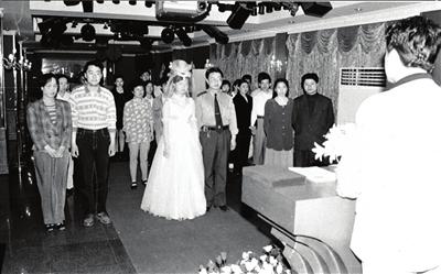 1998年5月11日,婚姻登記員向登記領(lǐng)結(jié)婚證的青年宣讀法律規(guī)定的有關(guān)夫妻的權(quán)利與義務(wù)。濟(jì)南市民政局婚姻登記管理處當(dāng)年在向婚姻當(dāng)事人分發(fā)結(jié)婚證書時(shí),一改過(guò)去簡(jiǎn)單、隨意的現(xiàn)象,而是為男女雙方舉行發(fā)證儀式,讓新婚夫婦感受到領(lǐng)取結(jié)婚證的神圣與莊嚴(yán)。