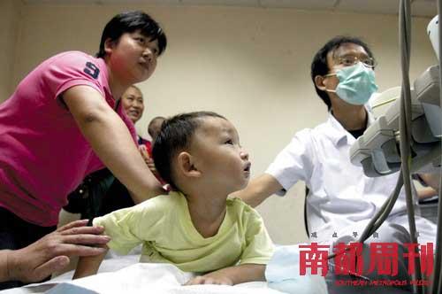 2008年9月17日,武漢市兒童醫(yī)院,近百位家長(zhǎng)帶著孩子到醫(yī)院做B超體檢。1歲10個(gè)月大的楊凱清小朋友喝了5個(gè)月三鹿奶粉