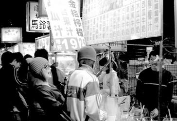 先有廟后有市,臺北最古老的幾個夜市都是如此。但臺灣夜市的真正繁榮,還要追溯到上個世紀70年代的石油禁運危機。就像如今席卷全球的金融危機一樣,當時西方國家一片愁云慘淡,紛紛取消訂單,依賴出口的臺灣大受打擊,外銷廠商吃盡苦頭,紛紛倒閉。為了求生存,尋找東山再起的機會,自然而然,出口轉(zhuǎn)內(nèi)銷,把退貨拿到夜市地攤大拍賣,沒想到大受歡迎,從此,吃喝之余,逛夜市買外銷退貨品、仿冒品,就成了臺灣人乃至外地游客的一大樂趣。