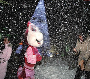 據(jù)北京歡樂谷市場營銷部經理趙強介紹,從昨天開始到春節(jié)期間,歡樂谷將首次啟動人工造雪,室外溫度在0℃以下,可現(xiàn)場造雪,營造雪花漫天的冰雪場景。同時,歡樂谷在園區(qū)六大主題區(qū)域共安設了10間小型取暖屋,免費提供給游客取暖。
