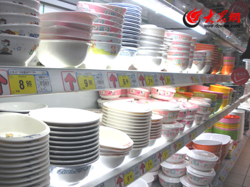 今日,本網(wǎng)記者在濟南銀座購物廣場和大潤發(fā)看到,各種仿瓷餐具琳瑯滿目,占據(jù)了餐具貨架的“半壁江山”,央視曝光的浙江省臺州市希爾家庭用品有限 公司生產(chǎn)的仿瓷產(chǎn)品赫然在列。購買仿瓷餐具的市民也不少。采訪中,不少市民都表示曾購買過仿瓷餐具,款式多樣、易于清潔、結(jié)實耐摔是她們選購仿瓷餐具 的主要理由。
