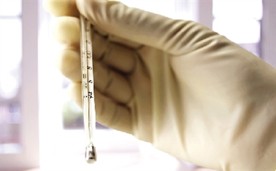 采用口腔測量的方法時(shí),先將體溫計(jì)度數(shù)甩到35℃以下,一定要將體溫計(jì)放在舌頭下,稍用力壓住,含3-5分鐘,最好是7分鐘。其間不要說話,讀取度數(shù)后照樣用衛(wèi)生紙清潔,還要特別用酒精浸過的毛巾由體溫計(jì)的尾端旋轉(zhuǎn)著擦到水銀那一端,進(jìn)行消毒。(記者 夏文)