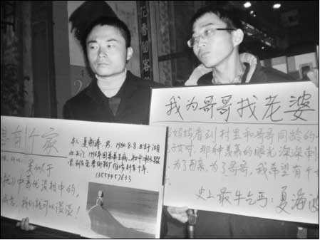 據(jù)介紹,夏海波兄弟將在中山公園、江漢路等繁華街頭舉牌征婚,以此擴(kuò)大影響。