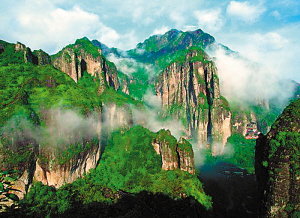 第二天的游程更精彩,我們早上去了大龍湫,到底占了個“大”字,水勢落差達(dá)197米,是小龍湫的整整3倍。沿著蜿蜒曲折的游道,觀兩邊奇形怪狀的山峰,那芙蓉峰初看像一把大剪刀,導(dǎo)游說還是“張小泉”牌的呢?蓳Q一個角度居然變成了帆船的桅桿了,再走幾步看又幻作一只啄木鳥,再走再瞧,又像極了一頭要偷吃蜂蜜的狗熊,真是移步換景。
