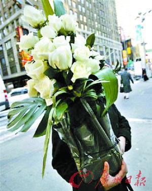 情人節(jié)來臨之際,美國街頭的商販正兜售白玫瑰花。