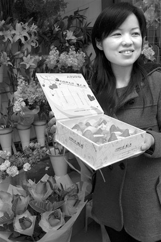 不過,在成都財富中心某公司工作的王宏新在訂下一束花后,當(dāng)即向老板詢問是否可以訂貨,還對老板的這個創(chuàng)意大加贊賞,并提出了自己的一些改進觀點。他說,其實,情人節(jié),大家過的就是一個情調(diào),只要看起來不錯,女朋友喜歡,買一份倒也是可以的。“年年送玫瑰、巧克力,今年來點新鮮的,送盒草莓,也許更討人喜歡。”一席話,引來眾人大笑。