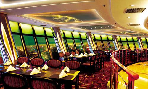 中央電視塔旋轉(zhuǎn)餐廳,在221米相當(dāng)于79層樓的“ 天上”深情相擁,怎能不心襟蕩漾?