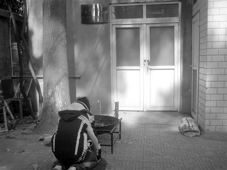 昨日春光燦爛,肖林親友們卻沒(méi)心情享受美景,他們齊齊來(lái)到烈士陵園等待法醫(yī)鑒定的結(jié)果。法醫(yī)鑒定工作室門(mén)外,燃著兩根紅燭,擺了臺(tái)供燒紙錢(qián)的鐵鍋,一名身著運(yùn)動(dòng)服的少年朝屋里躬身行禮,然后長(zhǎng)跪在草墊上淚流滿面。他是肖林的兒子肖理,年僅15歲。僅在一夜之間,他就不得不面對(duì)突然失去父親的現(xiàn)實(shí)。
