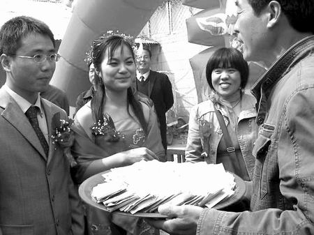 楊宏偉告訴記者,相對(duì)于形式,他更看重的是內(nèi)涵!艾F(xiàn)在的婚禮往往想方設(shè)法請(qǐng)來眾多高級(jí)轎車,然后在豪華賓館擺上若干桌酒席,請(qǐng)親朋好友來吃一頓,既鋪張浪費(fèi)又沒多大意義,還不如辦得簡單些,用節(jié)約下來的錢做些更有意義的事。”楊宏偉說,他將這個(gè)想法告訴妻子和父母后,得到他們的支持。