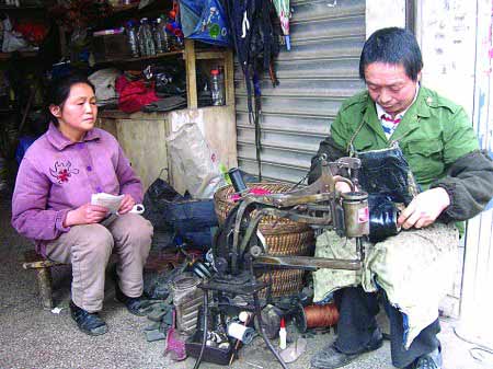 夫妻倆是四川武勝人。20年前,文應(yīng)剛帶著妻子和兩個兒子趕到南川,以補鞋為生。妻子周德玲在解放路擺攤補鞋,文應(yīng)剛則挑著補鞋機走鄉(xiāng)串戶。
