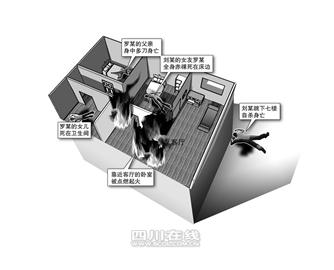 跳樓時(shí),劉某身上穿了一件棉毛衫和一條春秋褲,明顯是經(jīng)過(guò)了一夜的思考才做的決定!八丶业臅r(shí)候還吃了燒烤的。客廳左邊的那間臥室還被火燒了,孩子死在衛(wèi)生間里面,穿的粉紅皮鞋,身體在便池里面。”據(jù)這位知情人士透露,現(xiàn)場(chǎng)還有兩間臥室沒(méi)有被火燒,分別放著羅某和其父親的尸首。羅某全身赤裸,趴在床頭邊,紅色內(nèi)褲被脫至大腿兩側(cè),而羅某的父親在另外一間臥室平躺,頭朝門(mén)外,身上多處刀傷,滿地鮮血……至于劉某自殺前為何要將另外一間臥室點(diǎn)燃不得而知,遺書(shū)中沒(méi)有交代。(記者高洋攝影華小峰)