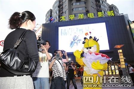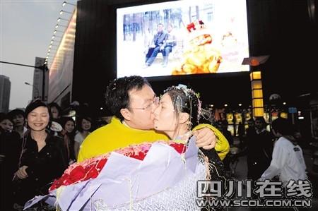 昨晚7點,應(yīng)男友的邀請,鄭小姐來到成都春熙路商圈的青年路太平洋影城準備和男友一起看電影。剛走到影城門口,鄭小姐突然發(fā)現(xiàn):影城門口的大屏幕上,居然正在播放由自己和男友平時照片所組成的短片。沒等鄭小姐回過神來,身穿加菲貓造型服裝的男友周先生已捧著大束玫瑰走上前來,單膝跪地:“嫁給我吧。”