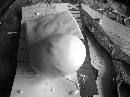 緊接著,他倒了半杯熱水,然后開始用這些原材料調(diào)配方,每種原料里用手捏一點撒進水里,然后攪拌大約半小時。原本是白色麥乳精樣顆粒狀的海藻酸鈉,開始慢慢溶解,剛才清澈見底的白開水,一會兒變成了黏稠的半透明的“雞蛋清”。