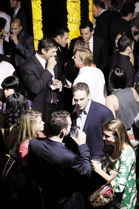 美國(guó)也不乏剩男剩女,盡管經(jīng)濟(jì)低迷,可并不妨礙白領(lǐng)們“相睇”的興趣!癋ashion Meets Finance”派對(duì),是專門(mén)為紐約這座城市里最引人注目,又充滿壓力的時(shí)尚界人士和金融界人士精心打造的。雖然這兩個(gè)行業(yè)的從業(yè)者有著眾多誘人的待遇,但他們都缺乏一個(gè)關(guān)鍵因素———在工作中缺少與異性的接觸。派對(duì)上人頭涌涌,看來(lái)剩男剩女們都急于找到另一半。