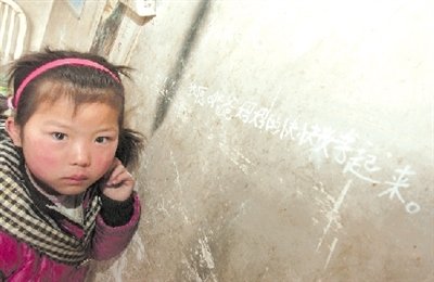 問起夢麗有啥心愿,她沒有直接回答,而是拿起半截粉筆在墻上寫著“我愿叫爸爸媽媽的病快快好起來”。在一側,她又寫下:“哥哥,你回來吧,爸爸媽媽有病了!”鄰居黃姣妞說,好幾次,沈保利和親戚去醫(yī)院看謝建國,謝夢麗自己一人待在大門口,幾次都等到深夜!八蓤詮娏耍瑥5歲上幼兒園到現(xiàn)在,她都是一人去學校,不讓送。好幾次都是鄰居給她送點飯,她是吃百家飯長大的!