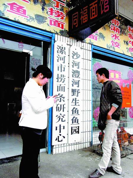 漯河市工商局一位工作人員告訴記者,這家“撈面條研究中心”并沒有注冊,掛這樣的招牌不太妥當(dāng),需要整改。(劉廣超文圖)