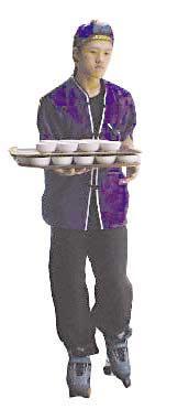 飯店在前臺(tái)還提供一個(gè)彩頁(yè)介紹,上面說(shuō)飯店每天能供應(yīng)2萬(wàn)份菜,最多時(shí)每天要進(jìn)1萬(wàn)多種活海鮮和水果、3.5噸大米、2.5噸肉和2噸蔬菜。最快時(shí),每小時(shí)就能做出3000盤(pán)菜來(lái)。飯店共有2.45萬(wàn)個(gè)盤(pán)子,刀叉1.7萬(wàn)副,僅廚房面積就有740平方米。人們一般來(lái)這里用餐都會(huì)說(shuō)成是吃“豪華溜冰餐”,因?yàn)轱埖昝娣e大,送菜的服務(wù)員都穿著溜冰鞋,在連接25個(gè)各具特色的大小餐廳間的回廊里穿梭。