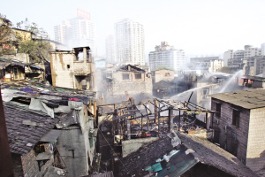 穿插在老屋間的老化電線,成了一場火災的幫兇:昨日下午3點多,渝中區(qū)十八梯至瞿家溝附近失火,火苗沿著電線蔓延,多棟民房被燒毀,逾千人被緊急疏散。