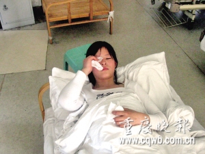 來(lái)自西南醫(yī)院 8年沒(méi)得到母愛(ài)的隆臘梅,此次被查出先天性心臟病,急需手術(shù)。因手術(shù)風(fēng)險(xiǎn)大,臘梅想在手術(shù)前讓媽媽抱抱。昨日,西南醫(yī)院內(nèi)科7樓42床,隆臘梅哭著告訴記者:“哪怕媽媽來(lái)看一眼,我也會(huì)從容面對(duì)手術(shù)!