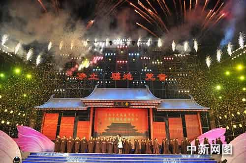 晚會由湖南衛(wèi)視著名主持人楊樂樂主持。海內(nèi)外高僧大德云集于此。香港著名歌手梁詠琪為活動獻(xiàn)唱了兩首耳熟能詳?shù)母枨抖Y物》和《愛得起》。臺灣佛樂天后齊豫演唱了佛曲《船歌》。內(nèi)地新生代歌手薩頂頂、《西游記》唐僧扮演者徐少華、香港Byond樂隊(duì)成員葉世榮登臺獻(xiàn)藝。