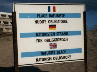 游客開(kāi)車(chē)前往阿德格角,老遠(yuǎn)就能望見(jiàn)路旁的指示牌上用法文寫(xiě)的“裸體”二字。