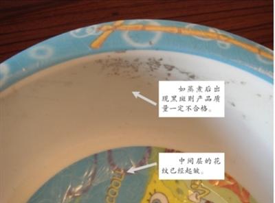 或者,您也可以參照《QB 1999—94密胺塑料餐具》標(biāo)準(zhǔn)中耐濕熱性的試驗(yàn)方法,把餐具放在沸水中浸煮30分鐘后取出,在室溫中放置一小時(shí),重復(fù)3次后,如果餐具出現(xiàn)發(fā)白、發(fā)澀、起泡、開(kāi)裂以及有刺鼻氣味等現(xiàn)象,說(shuō)明餐具產(chǎn)品質(zhì)量存在問(wèn)題。