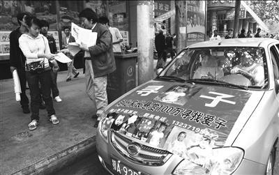 當天11時許,在漢口中山大道民意四路路口,許多市民圍在一輛銀灰色小車前。小車前部和側(cè)面都被彩色噴繪覆蓋著,上面印有7個孩子的照片、名字和丟失日期。這7個孩子的照片和資料顯示,他們是在1998年到2008年之間丟失,丟失時最大的12歲,最小的只有2歲。