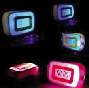 鬧鐘附帶的七彩背光燈,會在有聲音的情況下亮起來,方便晚上看時間。連續(xù)的聲音會讓它切換成不同的顏色燈光,晚上看起來相當漂亮。當然,也可以設(shè)置關(guān)閉聲控。(曾敏妍)