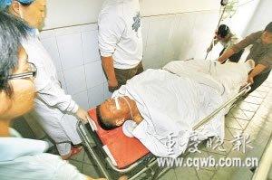 受傷的江中華被緊急送往醫(yī)院進(jìn)行搶救 記者 楊帆 攝