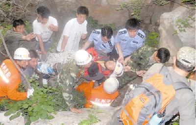 因手機(jī)信號(hào)不好,無(wú)法報(bào)警,“山客”順著峽谷一直向下,在少林寺管理局三皇寨管理處的停車(chē)場(chǎng)的百丈絕壁上呼救,同時(shí)向警方報(bào)警。該管理處科長(zhǎng)王振平迅速帶人趕赴峽谷。