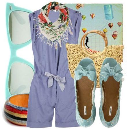 輕松的海邊復古裝扮,靛色連身工裝褲,活潑可愛,搭配雙蝴蝶結(jié)鞋子,走清新甜美風。
