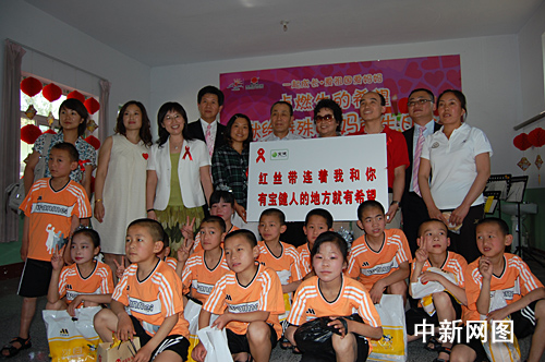 中新網(wǎng)6月3日電 5月30日,我國(guó)艾滋病宣傳大使、臨汾紅絲帶學(xué)校名譽(yù)校長(zhǎng)、著名演員濮存昕和青年歌手李丹陽(yáng)、中國(guó)青少年發(fā)展基金會(huì)副秘書長(zhǎng)汪敏、寶健(中國(guó))日用品有限公司副總裁蔡尚榮、寶健山西臨汾的代理商們等一行走進(jìn)山西臨汾“綠色港灣”,為紅絲帶小學(xué)的艾滋病患兒們送去了節(jié)日的禮物和溫馨的祝福。